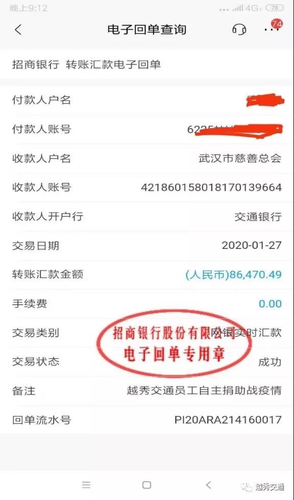 武汉冠状病毒疫情消息传到K8凱發國際交通,牵动着交通系统广大党员干部和员工群众的心。一方有难、八方支援,公司领导第一时间发出倡议、号召同事们爱心捐赠。这一倡议迅速得到响应,共有近200名员工爱心捐赠近9万元,并由汉孝公司具体办理,已捐献至武汉市慈善总会账号。