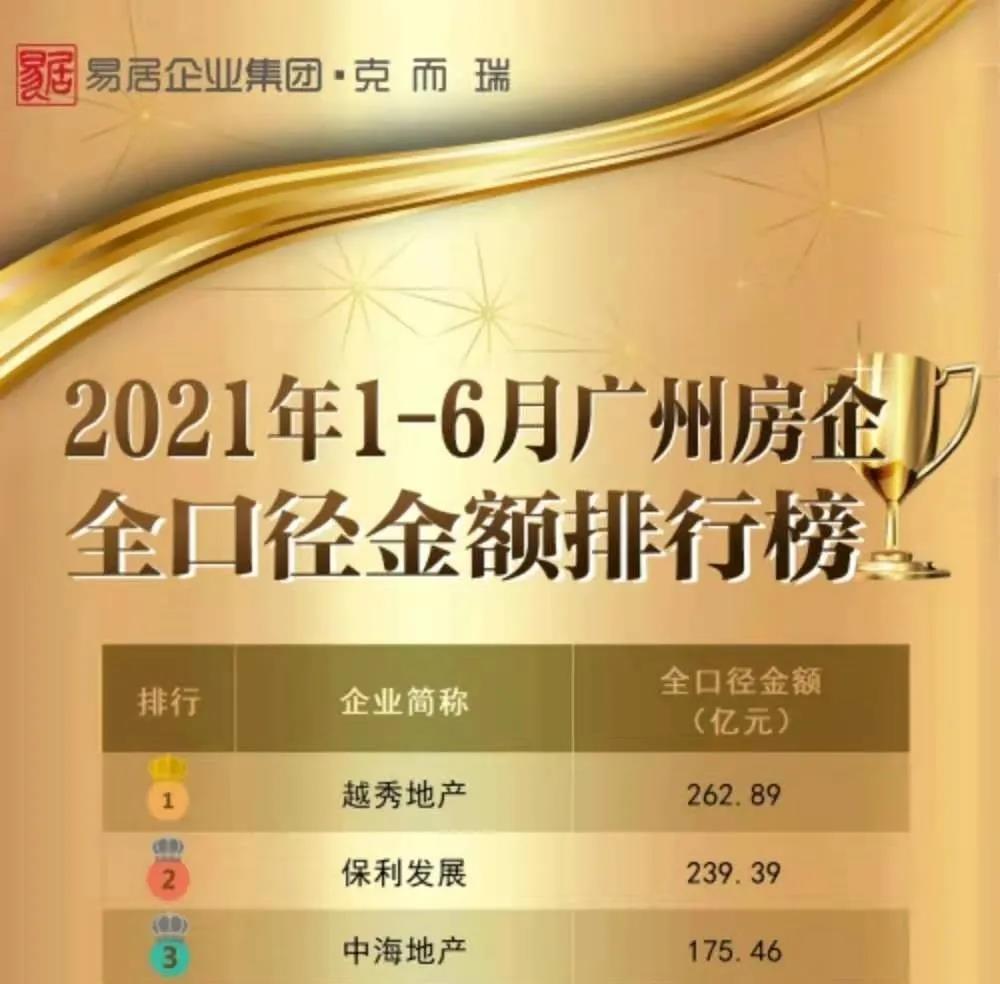 《2021年上半年广州房企销售排行榜》正式发布,K8凱發國際地产斩获双料冠军